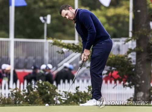 epa09479710 US team member Patrick Cantlay practices his putting during practice for the pandemic-delayed 2020 Ryder Cup golf tournament at the Whistling Straits golf course in Kohler, Wisconsin, USA, 21 September 2021. Competition for the 43rd Ryder Cup between the US and Europe begins 24 September 2021. EPA/TANNEN MAURY