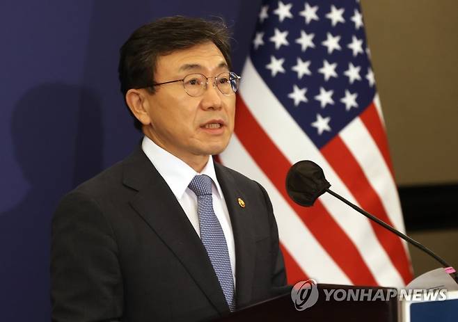 (뉴욕=연합뉴스) 최재구 기자 = 권덕철 보건복지부 장관이 21일(현지시각) 미국 뉴욕 한 호텔에서 한미 백신 협력 협약 체결과 관련해 브리핑하고 있다. 2021.9.22