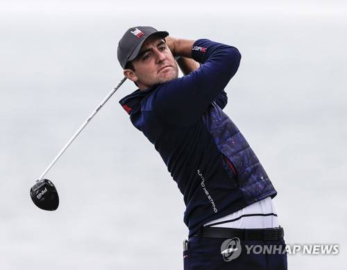 epa09480275 US team member Scottie Scheffler hits a tee shot on the fifth hole during practice for the pandemic-delayed 2020 Ryder Cup golf tournament at the Whistling Straits golf course in Kohler, Wisconsin, USA, 21 September 2021. Competition for the 43rd Ryder Cup between the US and Europe begins 24 September 2021. EPA/TANNEN MAURY