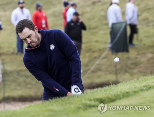 epa09480316 US team member Patrick Cantlay chips onto the fifth green during practice for the pandemic-delayed 2020 Ryder Cup golf tournament at the Whistling Straits golf course in Kohler, Wisconsin, USA, 21 September 2021. Competition for the 43rd Ryder Cup between the US and Europe begins 24 September 2021. EPA/TANNEN MAURY