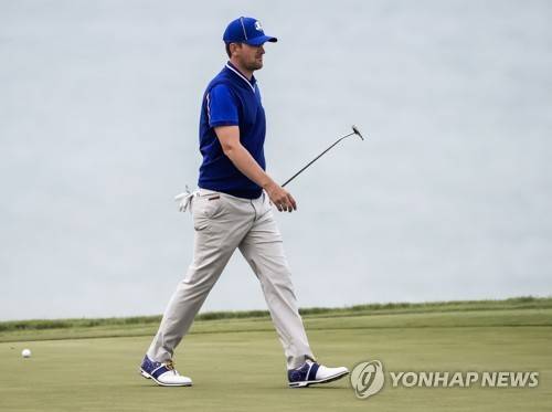 epa09480451 European team member Bernd Wiesberger of Austria walks across the sixteenth green during practice for the pandemic-delayed 2020 Ryder Cup golf tournament at the Whistling Straits golf course in Kohler, Wisconsin, USA, 21 September 2021. Competition for the 43rd Ryder Cup between the US and Europe begins 24 September 2021. EPA/TANNEN MAURY