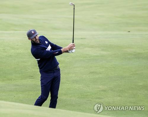 epa09480450 US team member Dustin Johnson hits on the tenth hole during practice for the pandemic-delayed 2020 Ryder Cup golf tournament at the Whistling Straits golf course in Kohler, Wisconsin, USA, 21 September 2021. Competition for the 43rd Ryder Cup between the US and Europe begins 24 September 2021. EPA/TANNEN MAURY