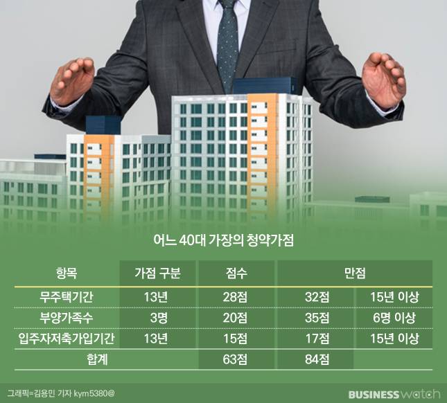 제 나이 43세인데 청약가점이 63점이에요.