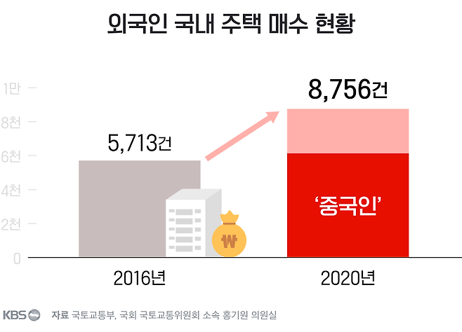 외국인의 국내 주택 매수 건수는 지난 2016년 5,713건에서 지난해 8,756건으로 증가했습니다. 올해 들어 지난 7월까지 매수 건수는 5,135건으로 지난해보다 더 늘어날 것으로 보입니다.