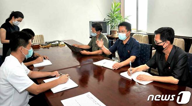 (평양 노동신문=뉴스1) = 북한 노동당 기관지 노동신문은 22일 건설건재공업성 간부들의 사진을 싣고 "국가적 이익을 첫 자리에 놓고 경제작전을 심화시키고 있다"라고 보도했다.