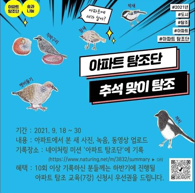 “도심 속 아파트 단지는 정원수가 자라 작은 생태계를 이루고 있어 새를 만날 가능성이 높습니다. 우리가 살아가고 있는 환경은 어떤지 함께 기록해보면 어떨까요?”