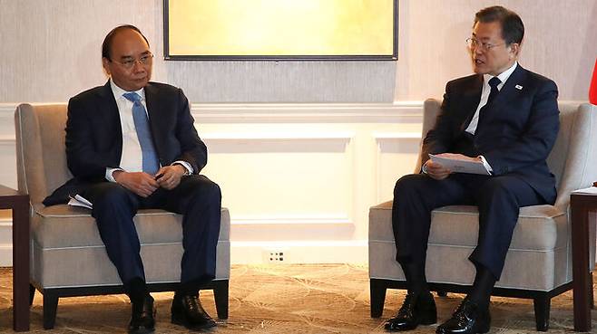 유엔총회 참석차 미국 뉴욕을 방문 중인 문재인 대통령은 응우옌 쑤언 푹 베트남 주석과의 정상회담에서 "양국은 코로나 발생 초기부터 방역 물자를 나누며 함께 위기를 극복했다"며 이런 계획을 밝혔다고 박경미 청와대 대변인이 서면브리핑에서 전했습니다.