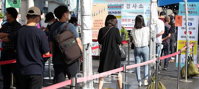 [이데일리 방인권 기자] 코로나19 신규 확진자가 이틀 연속 1700명대를 기록한 22일 서울역광장에 마련된 임시 선별검사소를 찾은 시민들이 검사를 받기 위해 줄을 서고 있다.