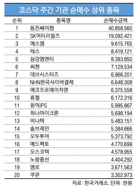 코스닥 주간 기관 순매수 1위 '동진쎄미켐'
