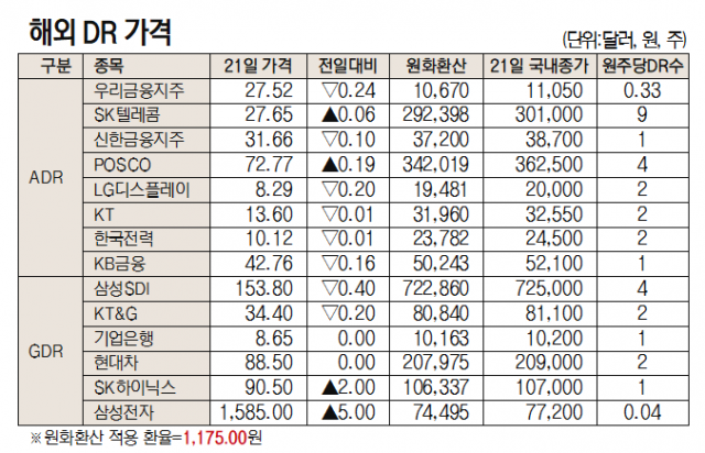 [표]해외 DR 가격(9월 21일)