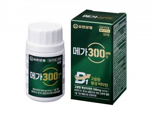 메가300정은 벤포티아민(비타민 B1)이 국내 최대함량인 300mg, 비타민 B6가 일일 최대용량인 100mg이 들어있다. 하루 한번 섭취로 복용이 간편하고 120정 포장으로 출시되어 4개월간 복용이 가능하다.