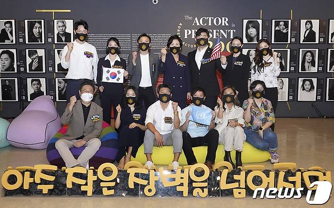 (서울=뉴스1) = 제76차 유엔총회를 계기로 문재인 대통령과 함께 미국 뉴욕을 방문 중인 김정숙 여사가 21일(현지시각) 미국 뉴욕한국문화원에서 열린 차세대 한인 청년 간담회에서 참석자들과 기념촬영을 하고 있다. (청와대 제공) 2021.9.22/뉴스1