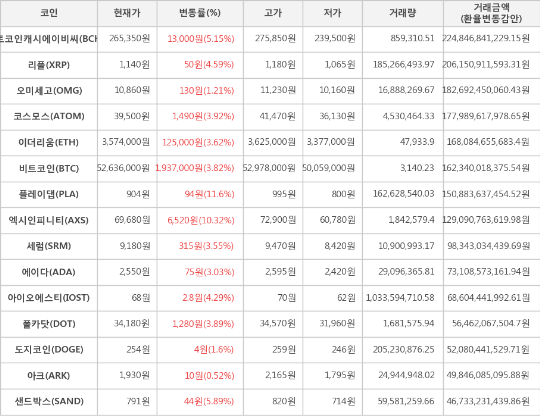 가상화폐 비트코인 3.82% 상승, 플레이댑 11.6% 상승