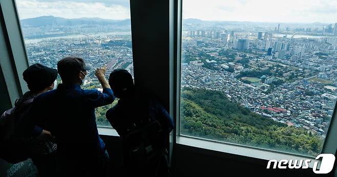 (서울=뉴스1) 안은나 기자 = 22일 서울 용산구 남산N서울타워에서 바라본 도심. 이날 KB부동산 리브온의 월간 주택가격 동향 시계열 자료에 따르면 올해 8월까지 전국 연립주택 매매가 누적 상승률은 4.66%로, 지난해 같은 기간 상승률(2.61%)을 넘어섰다. 아파트값이 치솟으면서 상대적으로 저렴한 연립·다세대주택 등 빌라를 찾는 수요가 늘고 있는 것이다. 2021.9.22/뉴스1