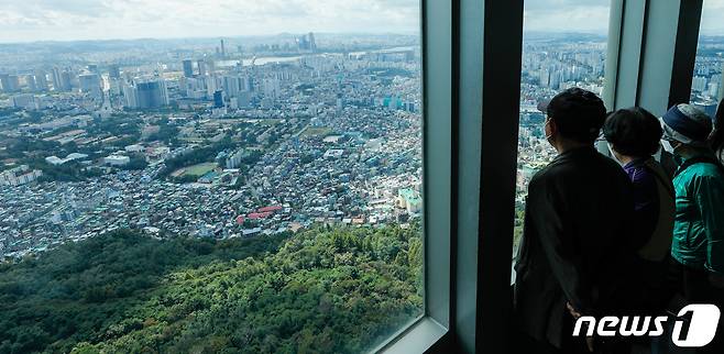 (서울=뉴스1) 안은나 기자 = 22일 서울 용산구 남산N서울타워에서 바라본 도심. 이날 KB부동산 리브온의 월간 주택가격 동향 시계열 자료에 따르면 올해 8월까지 전국 연립주택 매매가 누적 상승률은 4.66%로, 지난해 같은 기간 상승률(2.61%)을 넘어섰다. 아파트값이 치솟으면서 상대적으로 저렴한 연립·다세대주택 등 빌라를 찾는 수요가 늘고 있는 것이다. 2021.9.22/뉴스1