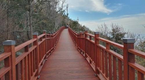 멀리서 보면 영도에 커다란 산이 바다에 우뚝 솟아 있다. 봉래산이다. 손봉(해발 361m)과 자봉(해발 387m), 정상인 조봉(해발 395m) 등 3개 봉우리를 거느린 야트막한 산이지만 부산 땅의 절반을 볼 수 있다. ‘가장 부산다운 풍경’이라는 평가도 받는다. 정상에 서면 부산항 대교를 비롯한 영도 주변 4개 다리부터 태종대, 오륙도, 송도 등을 품은 부산 앞바다 풍광이 거침없이 펼쳐진다. 중구, 서구, 동구, 사하구, 부산진구 등 부산 시가지와 멀리 광안리와 해운대 고층 빌딩까지 시야에 잡힌다. 최근 개설된 무장애 데크로드를 이용하면 보다 편하게 봉래산 정상에 오를 수 있다.