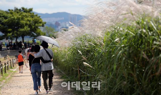 [이데일리 노진환 기자] 추석연휴 마지막 날인 22일 오후 서울 마포구 하늘공원을 찾은 시민들이 억새를 감상하며 산책을 하고 있다.