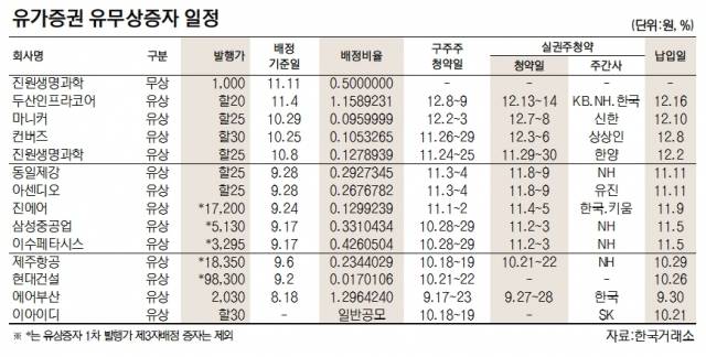 [표]유가증권 유무상증자 일정