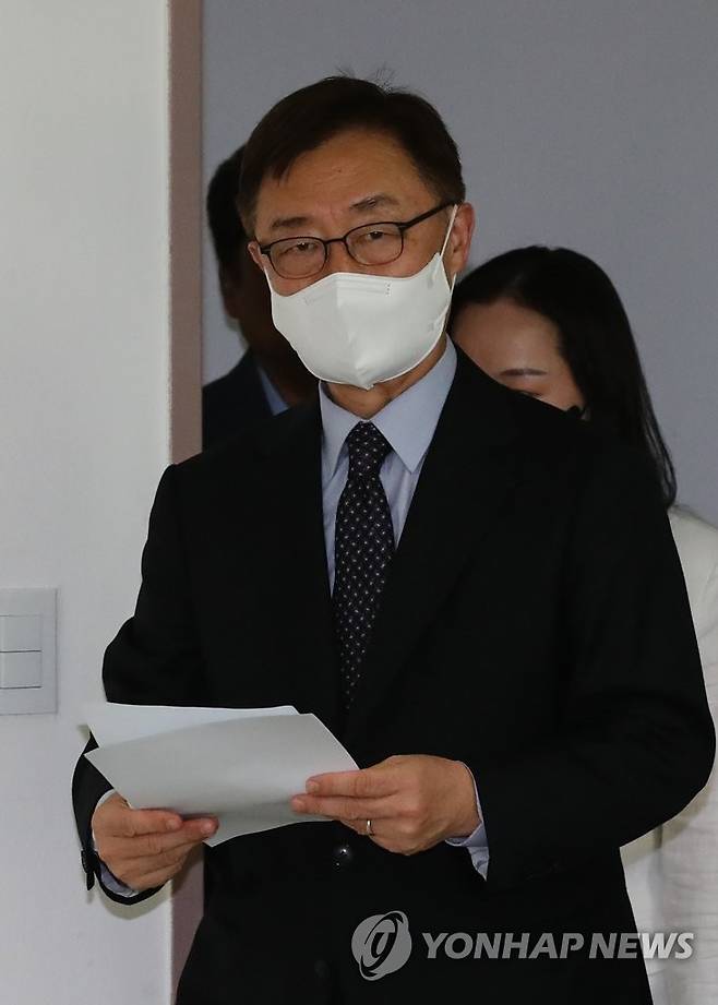 (서울=연합뉴스) 진성철 기자 = 국민의힘 대권주자인 최재형 전 감사원장이 22일 서울 여의도 선거캠프에서 더불어민주당 대권주자인 이재명 경기도지사와 관련해 대장동 개발사업 시행사인 '화천대유' 의혹에 대한 입장을 발표를 준비하고 있다. 2021.9.22 [국회사진기자단]