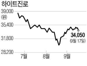 22일 IBK투자증권은 하이트진로 목표 주가를 5만1000원에서 4만3000원으로 15.69% 내렸다. 지난달 하이트진로 2분기 실적이 발표된 후 8개 증권사가 일제히 하이트진로 목표가를 내린 뒤 또다시 목표가를 하향하는 보고서가 등장한 것이다.