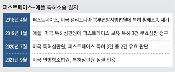 이에 애플은 2019년 해당 특허 3건의 무효를 주장하며 무효심판을 청구했다. 그러나 지난해 7월 미국 특허심판원이 특허 3건 중 2건이 유효하다고 판단한 데 이어 미국 연방항소법원 역시 해당 심리 결과를 인용했다. 앞서 퍼스트페이스는 애플의 경쟁사인 삼성전자에도 자사 미국특허를 1건 침해했다며 소송을 제기했지만 미국 특허심판원과 연방항소법원이 해당 특허는 무효라고 판단을 내리며 삼성전자와는 침해 소송을 이어갈 수 없게 됐다.