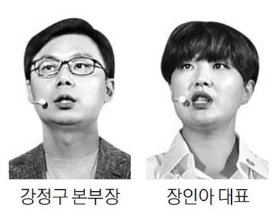 지난 15일 서울 중구 장충아레나에서 열린 제22회 세계지식포럼 오픈세션 'K콘텐츠 세계로 날다-스마일게이트와 카카오엔터테인먼트'에서 강정구 카카오엔터테인먼트 카카오웹툰글로벌 본부장과 장인아 스마일게이트 엔터테인먼트&스마일게이트 메가포트 대표는 정보기술(IT)의 발달로 웹툰과 게임이 지식재산권(IP)을 통해 새로운 문화 콘텐츠로 확장될 수 있는 가능성이 높다고 입을 모았다.