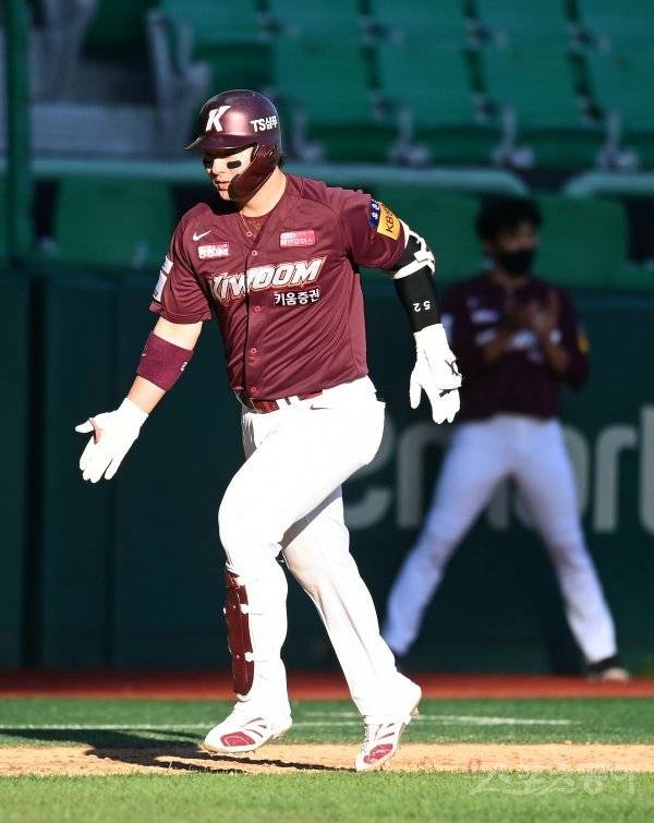 8회초 1사 키움 박병호가 역전 좌중월 솔로 홈런을 날리고 그라운드를 돌고 있다.