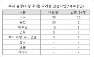 ■미국 투자 확대 조언 50%, 중국은 0%