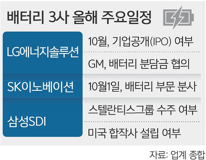 올해 4분기에는 한국 배터리 3사의 경쟁 구도가 더욱 치열해질 전망이다. 기업 분사와 미국 투자, 리콜 분담금 협의 등 기업별 향후 실적과 주가에 큰 영향을 미칠 현안들이 줄지어 대기하고 있다.