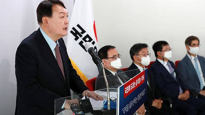 윤 전 총장은 오늘(22일) 오후 여의도 국민의힘 당사에서 이 같은 내용을 골자로 한 외교안보 분야 11대 공약을 발표했습니다.