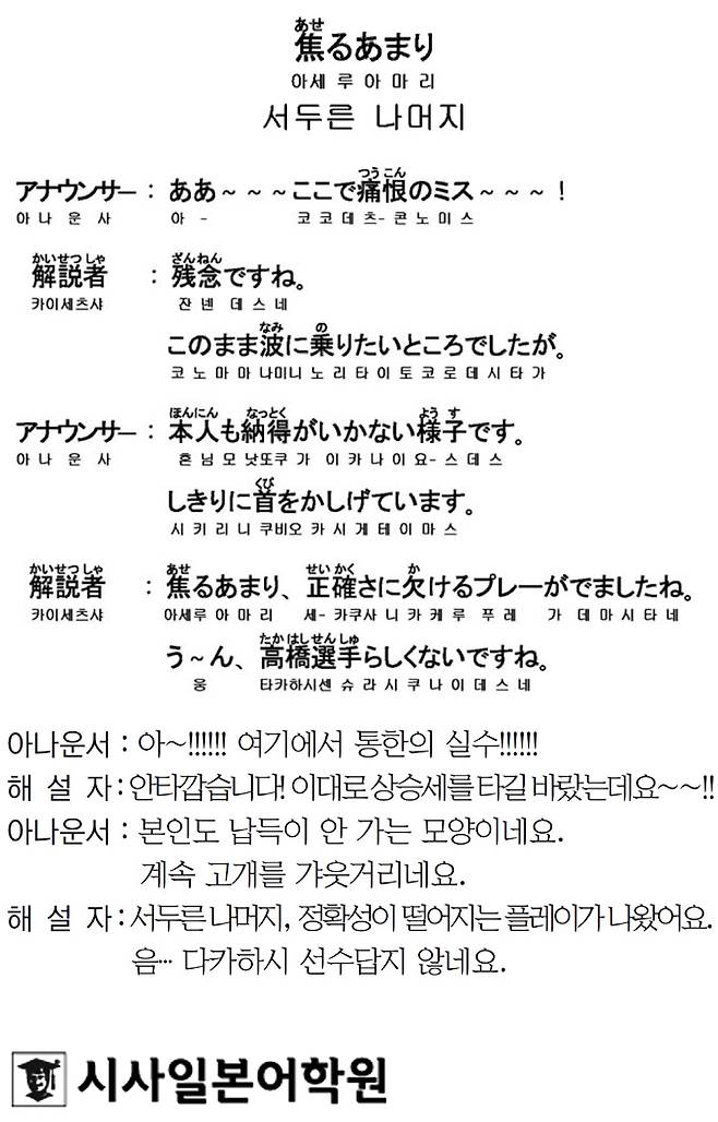 [시사일본어학원의 초단기 일본어 회화] 서두른 나머지