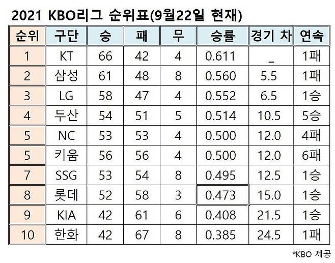 - 가을야구 티켓 잡아라…‘중위권 전쟁’ 단풍보다 붉다