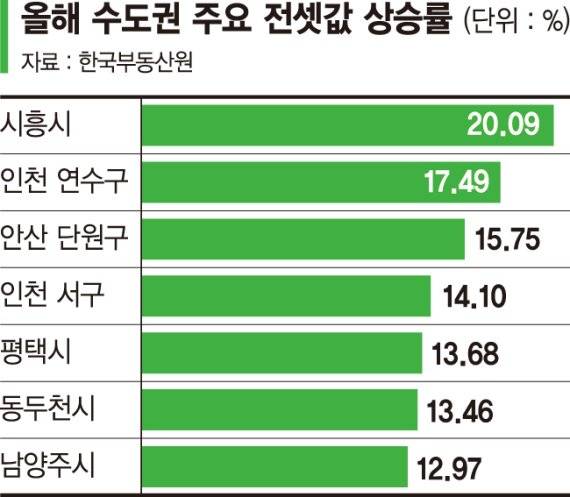 특히 전세난이 가속화되고 있는 수도권의 경우 올해 1∼8월 누적 전셋값 상승률이 7.51%로 지난해 연간 상승분(8.45%)에 근접한 상태다.