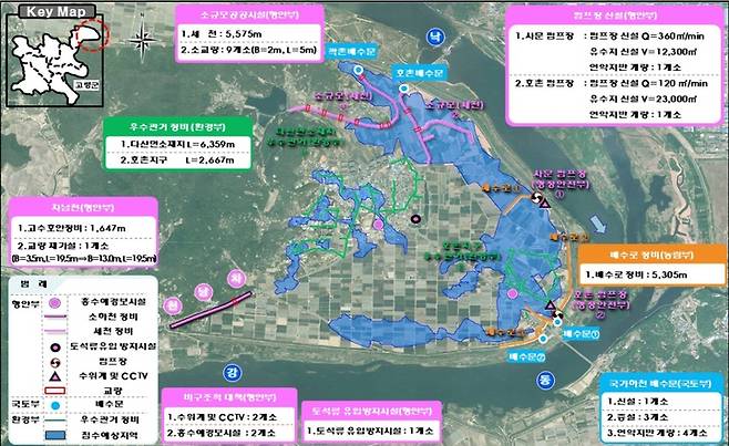 개진면 치산지구는 350억원을 들여 인안·옥산 및 부리지역에 소하천 L=6.5㎞ 펌프장 2곳을 설치한다.