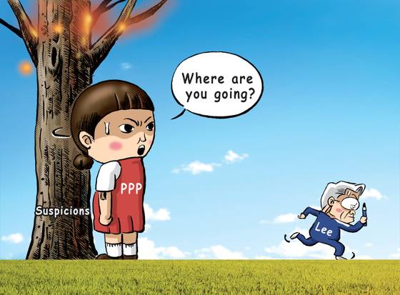 Gyeonggi Governor Lee Jae-myung, frontrunner among presidential candidates of the ruling Democratic Party, tries to avoid questions from the opposition People Power Party (PPP) despite growing suspicions over his alleged involvement in assigning a massive development project in Seongnam city to an obscure asset management company when he was the mayor in 2015. [PARK YONG-SEOK]