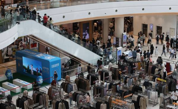 추석 연휴 마지막날인 22일 서울 시내 한 대형쇼핑몰이 방문객들로 붐비고 있다. 기획재정부는 8월 카드 국내 승인액이 전년 대비 7.2% 증가해 7개월 연속 증가세를 이어갔고 백화점 매출액도 14.4%나 늘었다고 밝혔다. 뉴시스