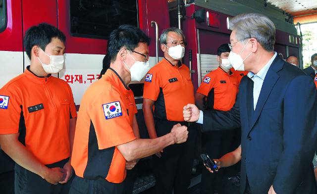 [포토] 소방관 격려하는 이재명