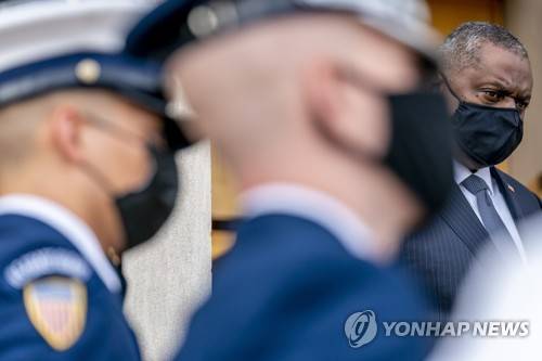 Secretary of Defense Lloyd Austin waits to greet Australian Prime Minister Scott Morrison as he arrives for an honor cordon at the Pentagon in Washington, Wednesday, Sept. 22, 2021. (AP Photo/Andrew Harnik)