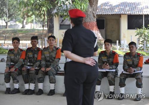 FILE - In this March 31, 2021, file photo, Indian army women recruits attend a class as part of their training before they are inducted as the first women soldiers below officer rank, during a media visit in Bengaluru, India. India’s top court on Wednesday, Sept. 22 allowed young women to take the entrance examination to the country's national defense academy for the first time in November, a watershed moment for them to join the armed forces as officers. The court had rejected the government plea that women were not suitable for commanding posts in the army, saying male troops were not prepared yet to accept female officers. (AP Photo/Aijaz Rahi) ARCH 31, 2021, FILE PHOTO