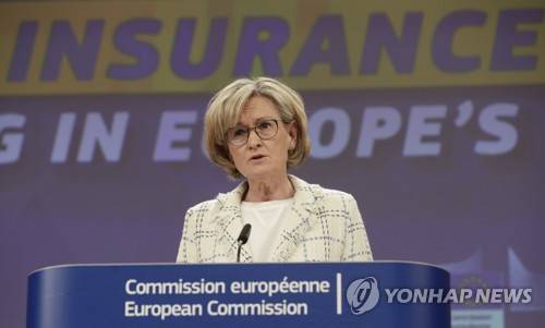 epa09481565 EU commissioner in charge of financial services, financial stability and the Capital Markets Union, Mairead McGuinness gives a press conference following weekly meeting of EU Commission in Brussels, Belgium, 22 September 2021. The presser focused on two topics; the review of EU insurance rules and EU generalized scheme of trade preferences. EPA/OLIVIER HOSLET / POOL