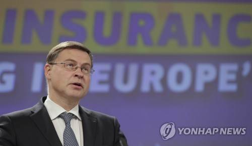 epa09481568 Valdis Dombrovskis European Commission Executive Vice-President in charge of an Economy that works for People gives a press conference following weekly meeting of EU Commission in Brussels, Belgium, 22 September 2021. The presser focused on two topics; the review of EU insurance rules and EU generalized scheme of trade preferences. EPA/OLIVIER HOSLET / POOL