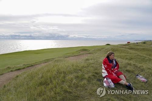 A fan waits for the start of a practice round at the Ryder Cup at the Whistling Straits Golf Course Wednesday, Sept. 22, 2021, in Sheboygan, Wis. (AP Photo/Ashley Landis)