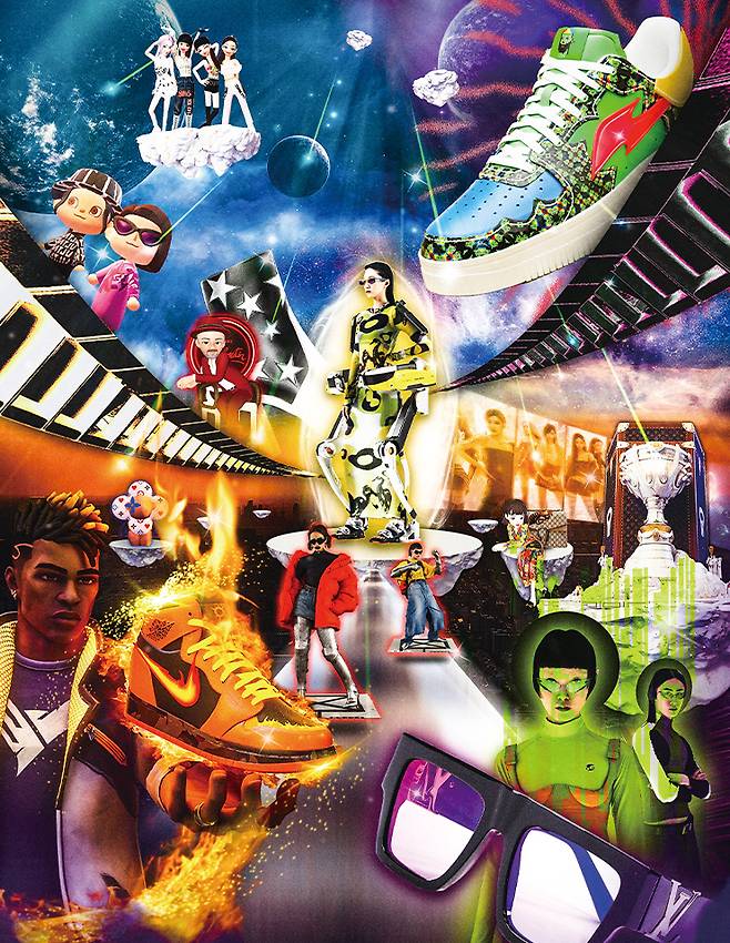 핫하다 핫해! 매일 미디어를 달구는 화제의 키워드 메타버스. 팬데믹으로 ‘현실 친목’이 어려워진 MZ세대의 돌파구 메타버스에 패션, 뷰티, 셀렙 모든 업계의 시선이 쏠렸다. 한강공원 잔디밭에선 맥주 모임을 할 수 없어도, ‘CU제페토한강공원점’에서 아바타로 만날 수는 있는 시기니까! 그냥 아바타냐고? 현실만큼 다양한 할 거리, 꾸밀 거리 덕에 심심할 틈이 없다. 최근 가장 주목받은 플랫폼인 제페토는 전 세계 2억 명 이상의 유저를 보유하고 있으며, 그중 80% 정도가 10대라고. 현실에서 스타일 좋은 인플루언서가 주목받듯 제페토에서도 아바타를 예쁘게 꾸밀수록 인기가 높다. 아바타를 치장해줄 아이템은 ‘코인’과 ‘젬’을 사용해 구입할 수 있는데, 이용자가 직접 아이템을 제작·판매할 수도 있다. 포토 부스에서 사진을 찍거나 비디오 부스에서 K팝 안무를 추고 이걸 피드에 올릴 수도 있으니 SNS 기능까지 한 큐에 해결! 제페토 속 AR 아바타를 주인공으로 한 웹드라마까지 유튜브에 연재되고 있으니, 지금껏 본 적 없는 새로운 시대다. 제페토 세상에 모여든 MZ에게 구찌, 나이키, 크리스찬 루부탱 등 빅 브랜드가 재빨리 손을 내밀었다. 제페토 내에 각 브랜드의 아이템을 구매할 수 있게 출시한 것! 구찌의 경우 아이템 개당 1000~4000원 선에 구매가 이뤄졌다. 비록 아바타지만, 실물의 1000분의 1 가격에 명품을 산다고? 럭셔리에 관심 있지만 경제력은 약한 MZ의 마음을 제대로 겨냥해 엄청난 호응을 이끌었다. 작년 5월 코로나19로 패션 위크가 취소되자 발렌티노와 마크 제이콥스는 게임 〈모여봐요 동물의 숲〉(이하 〈동물의 숲〉)으로 향했다. 아장아장 귀여운 2.5등신 아바타들이 무료 배포된 캐릭터 스킨을 입고 패셔너블함을 뽐냈다. 복잡한 행사장에 안 가도, 있는 대로 차려입지 않아도 된다. 휴대폰 하나만 있으면 하이패션을 ‘씹고 뜯고 맛보고 즐기고’ 할 수 있으니까! 매 시즌 프레젠테이션에 어마어마한 금액을 사용하던 패션 브랜드에게 새로운 전환점이 됐다. 패션 브랜드와 게임의 접점은 몇 년 전부터 차근히 이뤄져왔다. ‘겜덕’과 ‘옷덕’들을 한마음으로 대동단결시키는 비상한 컬래버레이션! 루이 비통은 대표적인 게임 친화적 브랜드. 2016년에는 〈파이널 판타지〉 캐릭터 ‘라이트닝’을 가방 캠페인 모델로 내세웠고, 2019년에는 〈리그 오브 레전드〉(일명 〈롤〉)와 협업해 게임 캐릭터를 위한 아이템을 판매했다. 올해는 자체 게임 〈루이 더 게임〉을 개발, 배포했다. 젠틀몬스터도 블리자드의 〈월드 오브 워크래프트: 불타는 성전 클래식〉 출시 기념 선글라스를 선보였다. ‘일리단’이라는 캐릭터의 불타는 초록 눈을 닮은 틴트 선글라스 패키지를 한정판으로 제작했다고. 발렌시아가는 게임 개발사 퀀틱 드림과 협업해 〈애프터월드: 더 에이지 오브 투모로우〉라는 게임으로 새 컬렉션을 소개했다. 발렌시아가의 2021 가을 컬렉션 룩을 입은 모델들이 디지털 스캔을 거쳐 캐릭터가 됐다. 디스토피아적 무드가 물씬 풍기는 배경과 상반되는 요소를 뒤섞은 룩이 묘하게 어우러졌다.