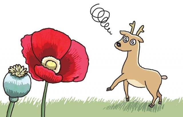 야생 양귀비들은 초식동물들에게 시도 때도 없이 시달린다. 어느 순간 나타나 무지막지하게 뜯어먹는데도 움직일 수 없기 때문이다. 하지만 무작정 당하는 건 생명의 본성에 어긋나는 일. 그래서 만든 게 회심의 무기, 아편이다.