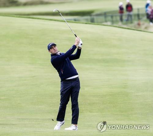 epa09482348 US team member Scottie Scheffler hits on the tenth fairway during practice for the pandemic-delayed 2020 Ryder Cup golf tournament at the Whistling Straits golf course in Kohler, Wisconsin, USA, 22 September 2021. Competition for the 43rd Ryder Cup between the US and Europe begins 24 September 2021. EPA/TANNEN MAURY