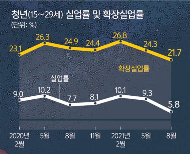 8월 청년실업 5.8%.. 2020년보다 1.9%P↓