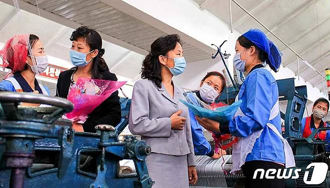 (평양 노동신문=뉴스1) = 북한 노동당 기관지 노동신문은 23일 "대를 두고 길이 전할 크나큰 사랑과 믿음을 받아안은 문강순, 리명순 동무들을 축하해주는 김정숙평양방직공장의 종업원들"이라며 관련 사진을 실었다. 신문은 "애국자는 나라의 초석이며 대들보"라고 강조했다.