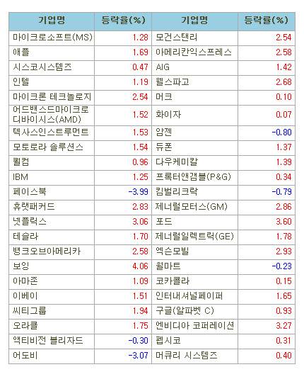[표]미국 주요기업 주가(9/22)