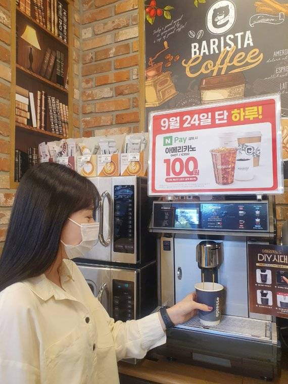 ‘이프레쏘 데이’에는 이프레쏘 아메리카노와 아이스아메리카노를 네이버페이로 결제 시 100원에 구매 가능하다.