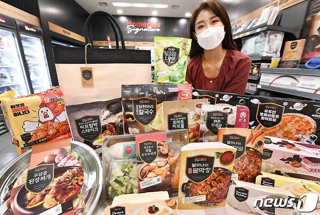 (서울=뉴스1) = 23일 서울 등촌동 홈플러스 강서점에서 시그니처 위크 행사 상품을 선보이고 있다.